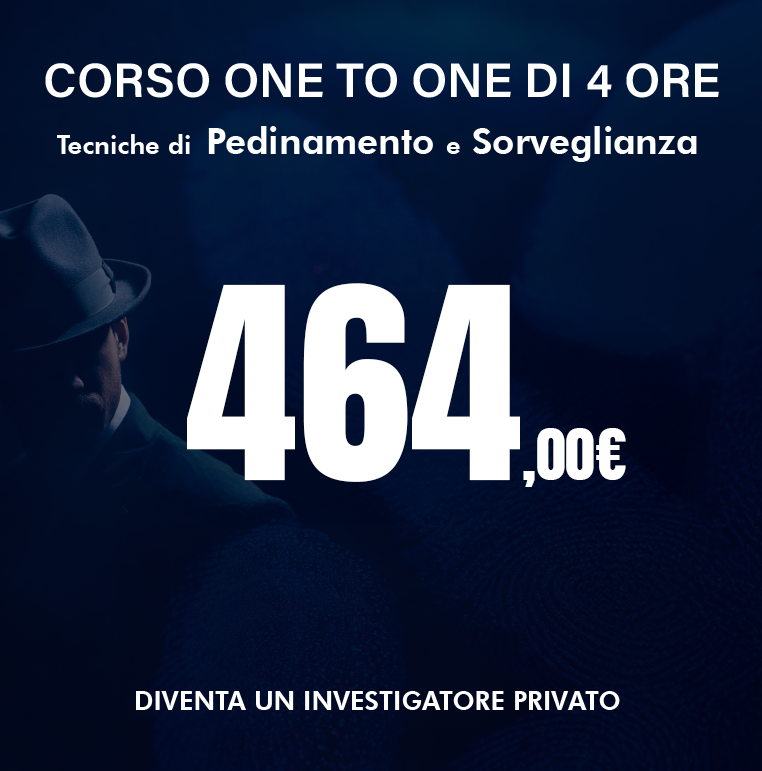 Acquisisci le competenze pratiche e teoriche per effettuare un pedinamento in autonomia, utilizzare le giuste tecniche di sorveglianza e saper redigere un report investigativo completo e professionale.